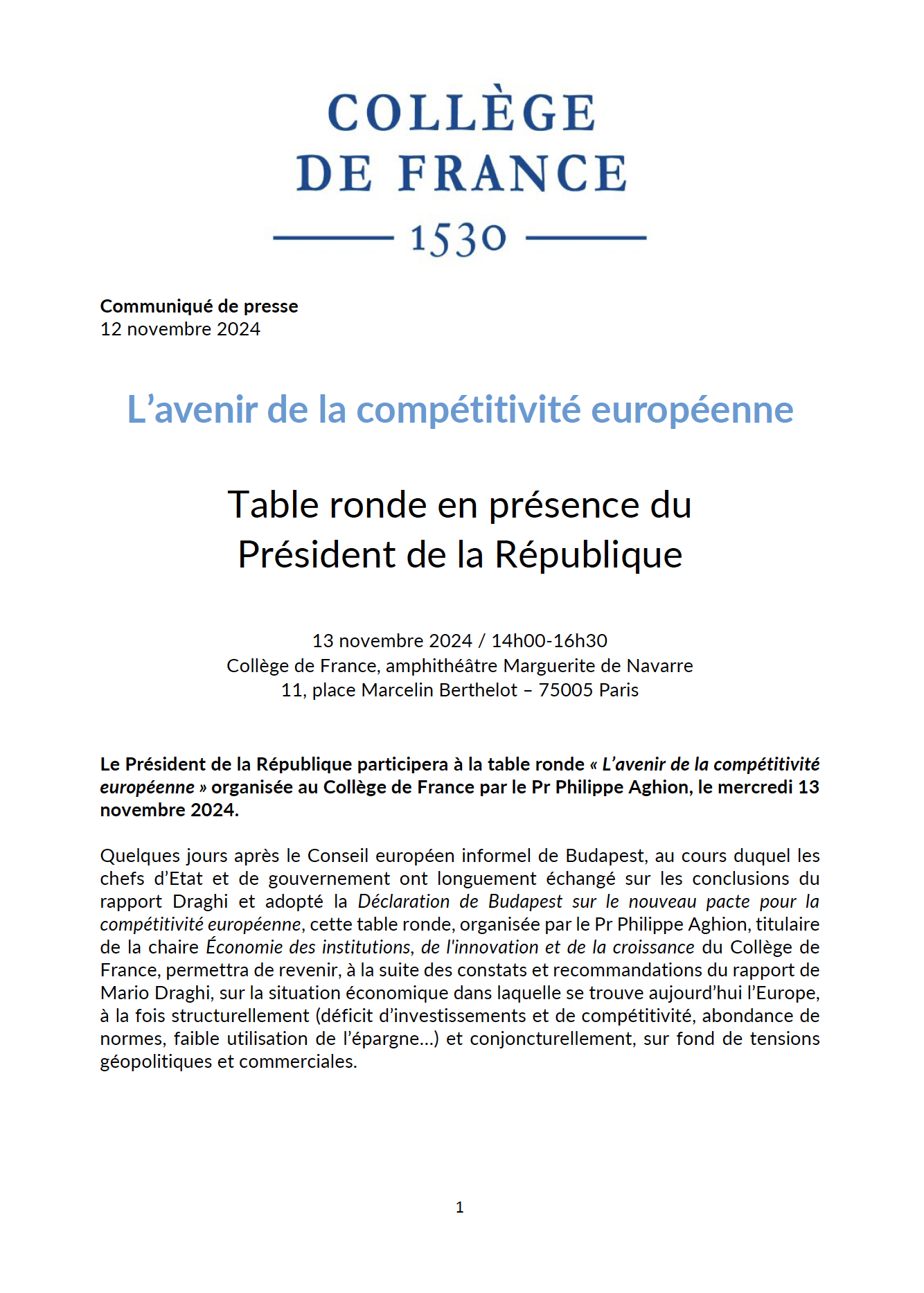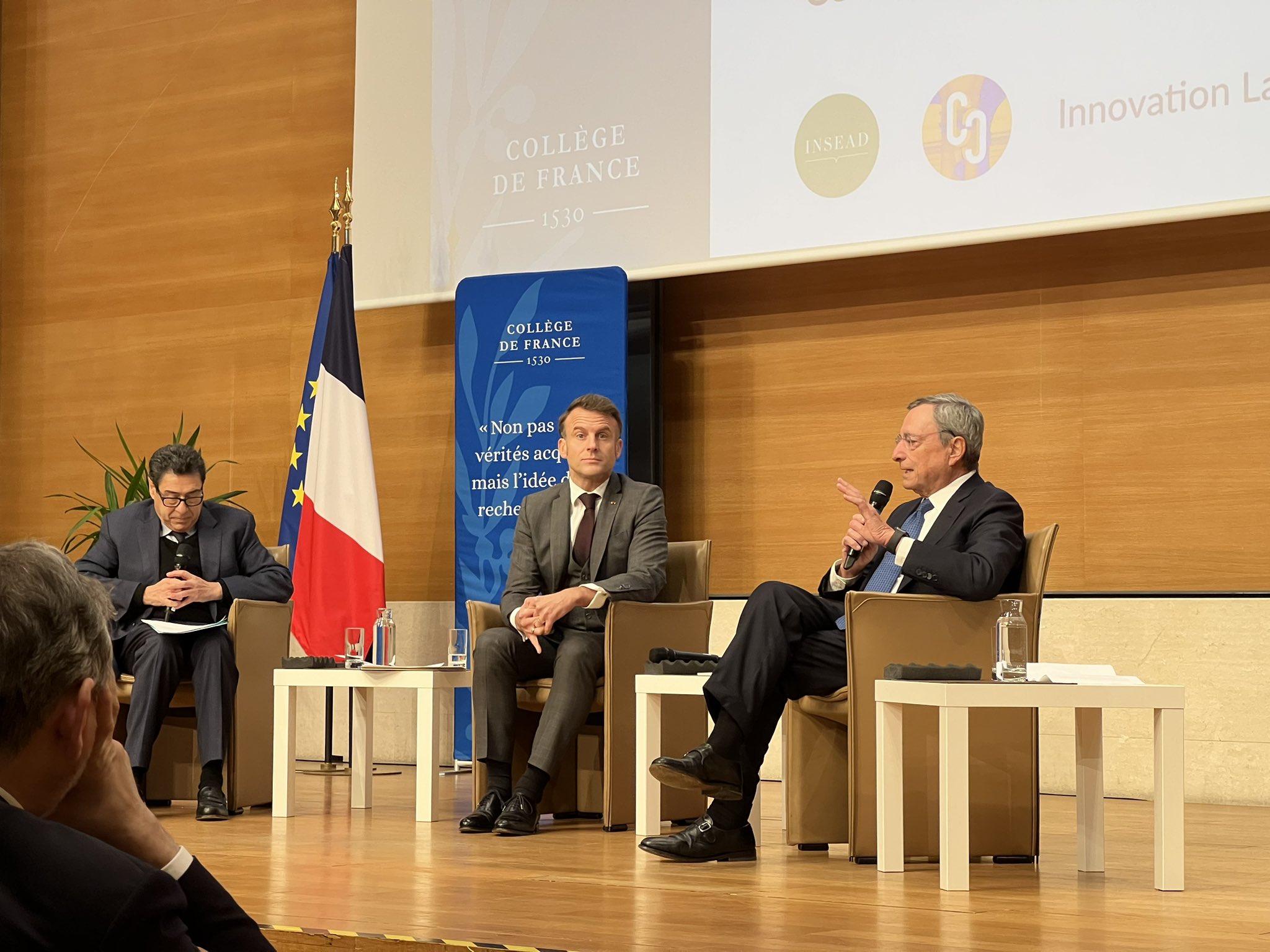 Professor Philippe Aghion, Chair at the College de France and Senior Fellow of the GW Competition & Innovation Lab, moderated a debate between French President Emmanuel Macron and Mario Draghi, former President of the European Central Bank, following the publication of the Draghi Report.