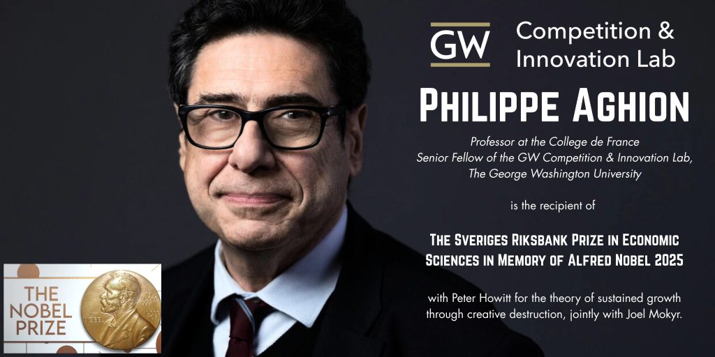 Philippe Aghion is Senior Fellow of the GW Competition & Innovation Lab. Philippe Aghion is the recipient of The Sveriges Riksbank Prize in Economic Sciences in Memory of Alfred Nobel 2025. Prize motivation: “for the theory of sustained growth through creative destruction”